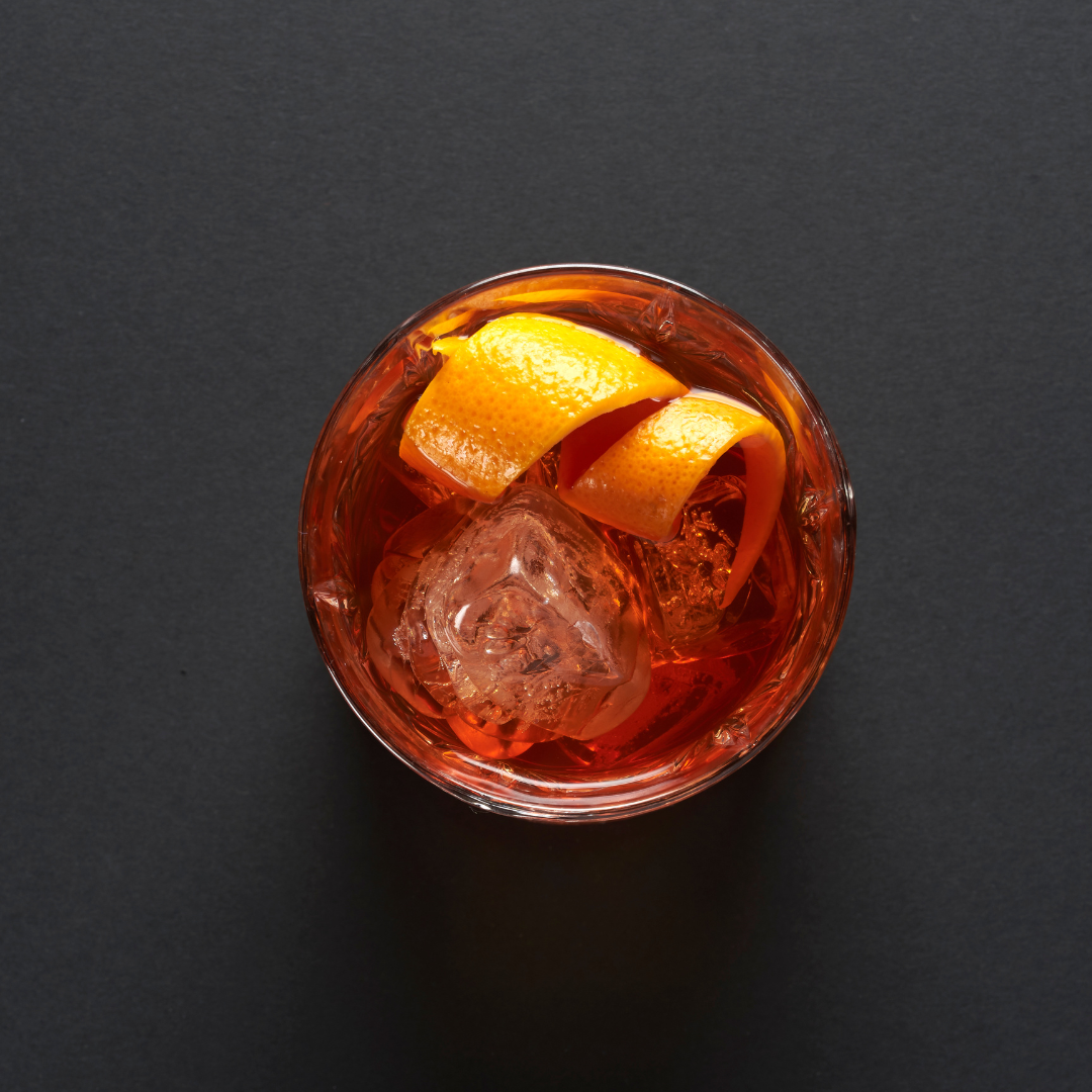 En frisk og bitter-sur aperitif med Campari, prosecco og granatæblesirup – perfekt som aperitif i aftensolen.