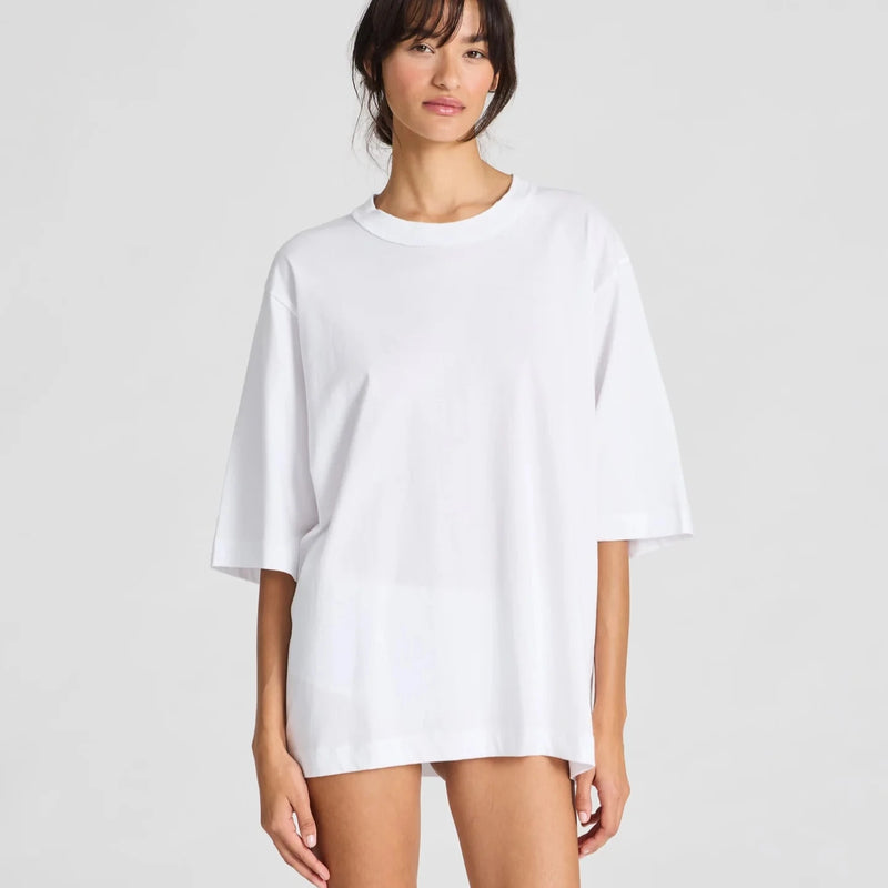 Maya er en kortærmet tee shirt, som er lavet af 100% økologisk bomuld. T-shirten har lav skulderssøm og rund halsudskæring med rå kant.