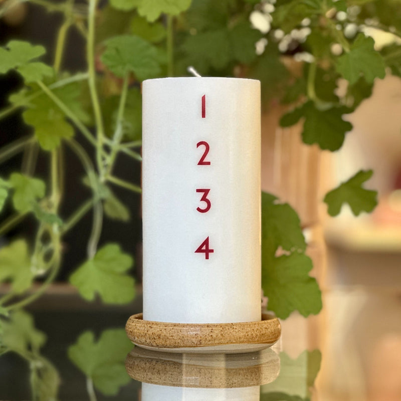Det fine adventslys med tal fra Åbenlys er et smukt og alternativt bud på et klassisk kalenderlys.