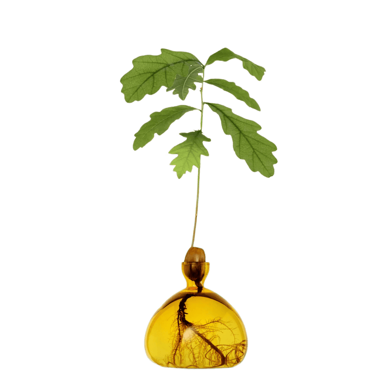 Denne runde vase er lavet specifikt til at spire agern i. Du er med til at se et simpelt agern, du har plukket, vokse sig til et stort og fint træ, som du senere kan plante.