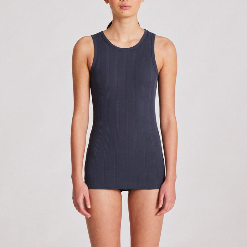 Alberte tanktop har et simpelt design med en rund halsudskæring og en tætsiddende pasform. Det er en fantastisk basistop, til brug alene og især under striktrøjer eller andre tynde bluser for at give lidt varme.