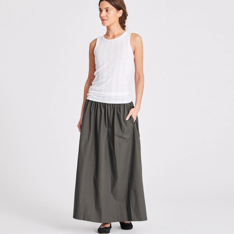 Astrid nederdelen har en fin vidde, som gør den falder rigtig flot og giver dig et afslappet look. Nederdelen er designet med sidelommer - super praktisk. Den har en bred elastik i taljen og er lang.