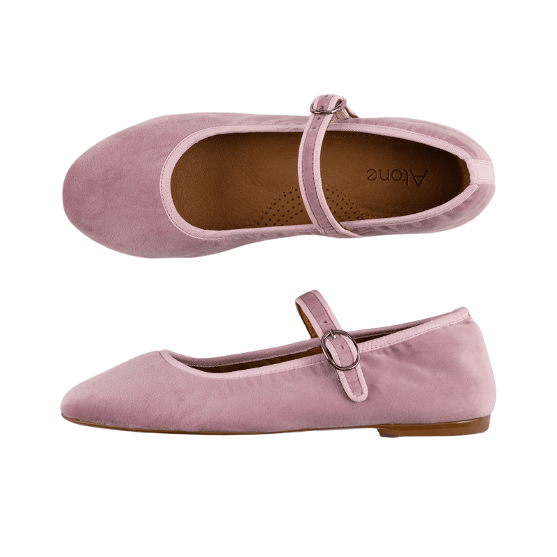 Vores Mary Jane ballerinaer er lavet i en blød velour og har den klassiske spænde over vristen. Disse ballerinaer er ikke bare fine i udsende, du får faktisk også en flad sko, som er behagelig at gå i. Indersålen har nemlig svangstøtte og ekstra puder i hælkappen, som giver en blød og bouncy fornemmelse.