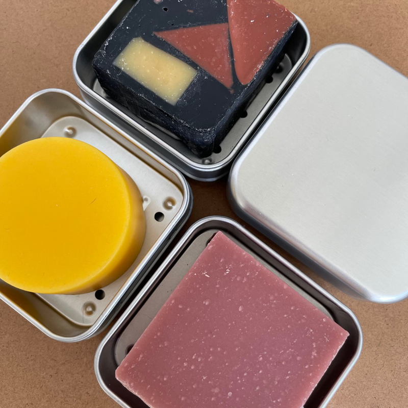 Sæbe-, shampoo- og balsambarer er et glimrende valg, hvis du gerne vil minimere brugen af plastik. Skal du i svømmehallen, på ferie eller bare afsted hjemmefra, er denne aluminiumsdåse en praktisk løsning til opbevaring og transport af dine faste barer.