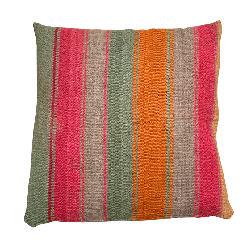Frazada puderne fra Chola forener traditionelt boliviansk håndværk med tidløst design. Puderne er syet af håndvævede vintage uldtæpper fra højlandet i Bolivia, hvor hver vævning bærer sin egen historie og farvesammensætning.