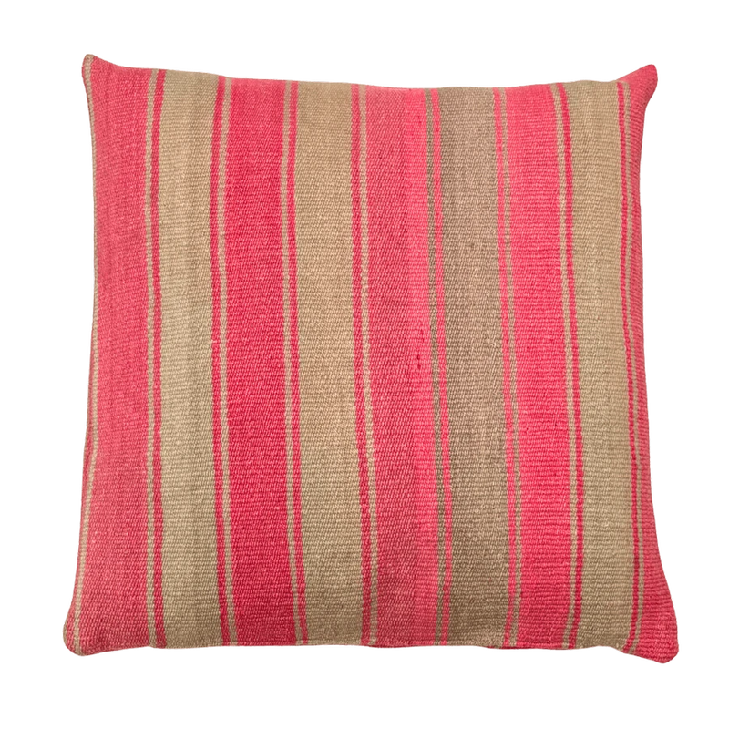 De smukke Frazada puder fra Chola er syet af håndvævede vintage uldtæpper, som er opkøbt i Bolivia. Hvert stykke stof bærer præg af tradition og håndværk, skabt af de dygtige højlandskvinder, der i generationer har vævet mønstre med historie og sjæl.