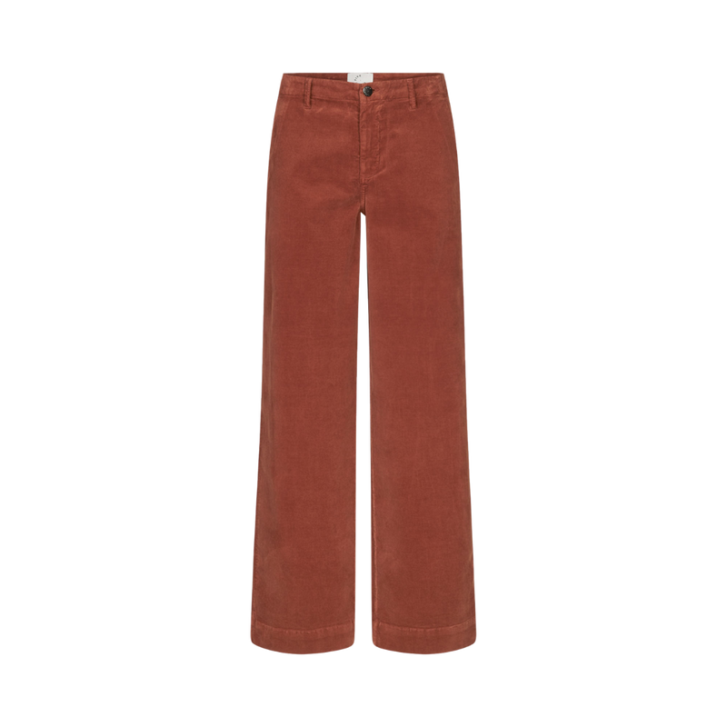 EricaFV er et par lækre fløjl bukser fra FiveUnits! Bukserne har bæltestropper, en lynlåsgylp med knaplukning og lommer i siden og bagpå. Buksen er skåret lige i en silhuet med brede ben.