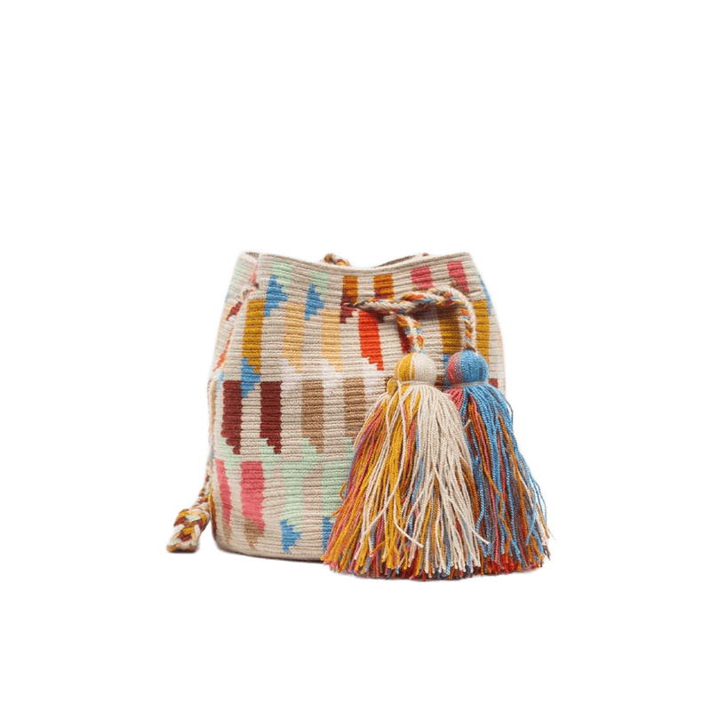 Tasken er designet i Madrid og hæklet i hånden af Wayuu-håndværkere i Colombia. Små variationer i mønster og størrelse understreger dens unikke, håndlavede karakter.