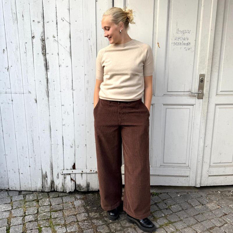 DESIKC bukserne i fløjl er et par tidløse italienske bukser. Bukserne er fremstillet i 100% bomuld, som føles let og behagelig mod huden – perfekt til både hverdag, men kan også snildt bruges til finere brug. Den brede, lange pasform giver et moderne udtryk og masser af bevægelsesfrihed, mens det enkle design gør dem nemme at style med alt fra skjorter til strik.