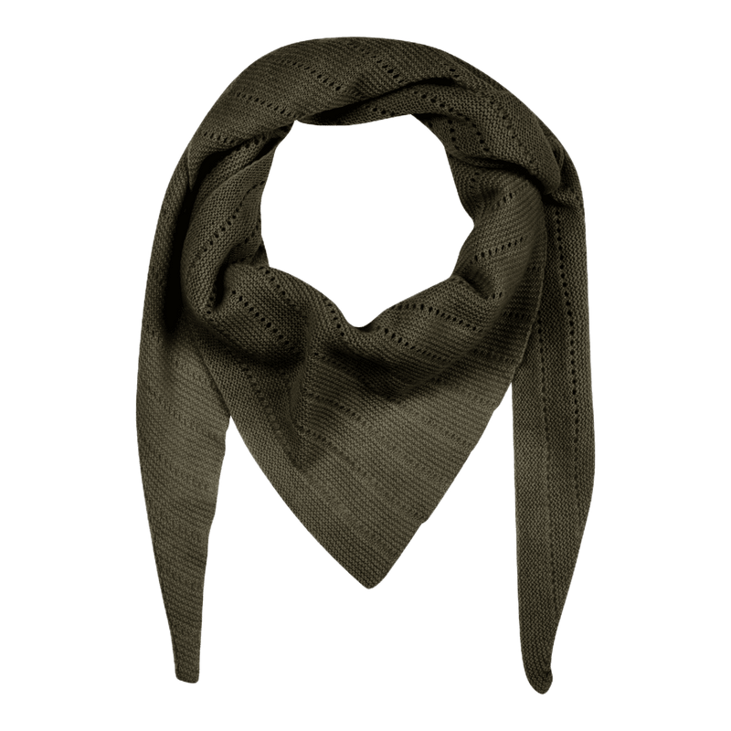 Tørklædet har et feminint hulmønster på tværs af den trekantformede silhuet.