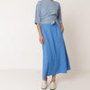 Nederdelen fås i flere farver: blå, hørfarvet beige og grå, som alle passer naturligt ind i en alsidig garderobe.