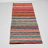 Løberen er vævet i et dekorativt stribet design og kan bruges i gangen eller som et let vægtæppe på væggen. Kombinationen af de genanvendte sarier og den traditionelle væveteknik giver et levende og personligt udtryk, som tilfører varme og karakter til indretningen.