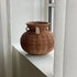 Denne rund vase er håndflettet i Vietnam i det naturlige og slidstærke materiale rattan. Den er lav og tyk med en smallere top øverst som giver et fint udtryk til vasen.