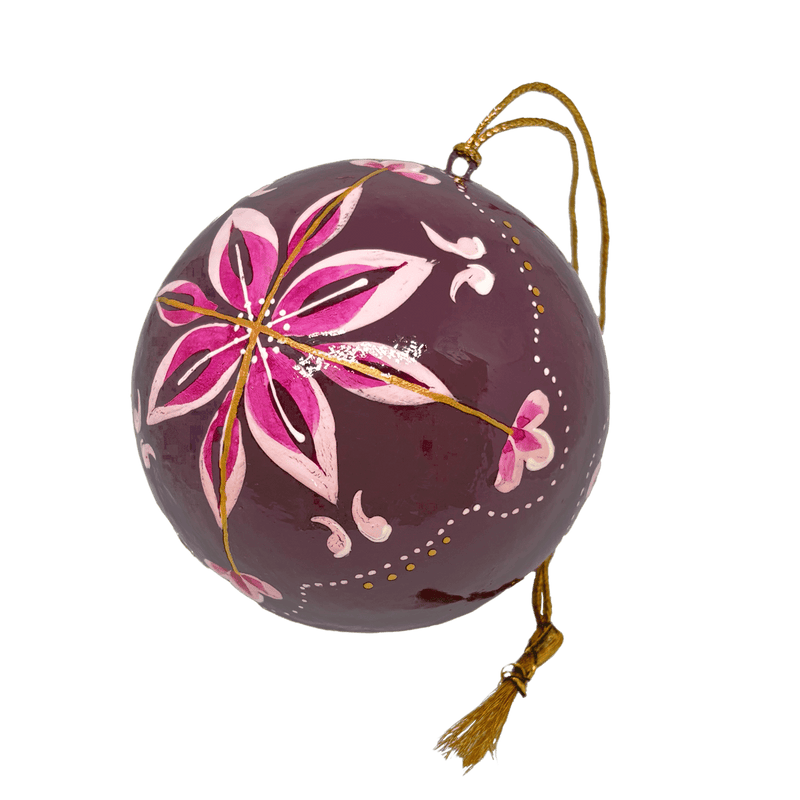 Vores egne julekugler er endelig landet – og de er noget helt særligt. Hver kugle er håndmalet i Indien i begrænset antal, og designet er skabt af Ella Skov, som har malet det fine mønster specielt til Balsalen.