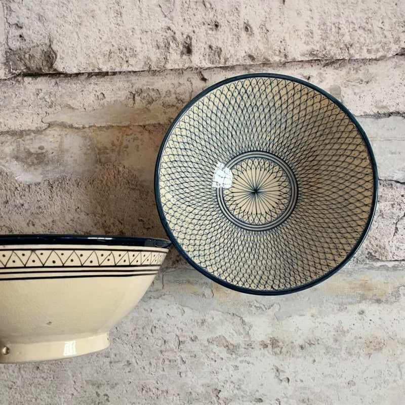 De smukke marokkanske keramikfade og skåle, er håndmalede af dygtige håndværkere med traditionelle mønstre tilhørende de forskellige egne, hvor keramikken laves.