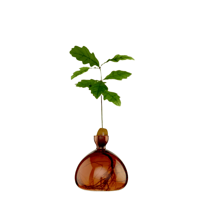 Denne runde vase er lavet specifikt til at spire agern i. Du er med til at se et simpelt agern, du har plukket, vokse sig til et stort og fint træ, som du senere kan plante.