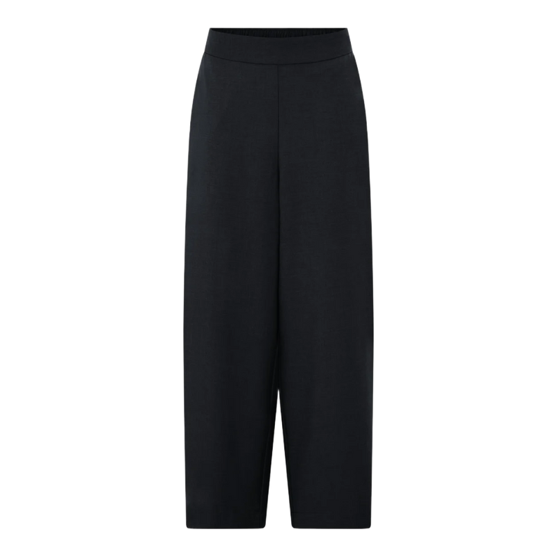 Copenhagen long er enkel med en bred elastik i taljen, usynlige sidelommer og et benforløb med vidde.