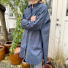 Gennemknappet og lavet i let bomuldspoplin gør den åndbar og super behagelig at have på. Modellen er one size og falder forskelligt afhængigt af kropstype, men passer størrelser 34–44.