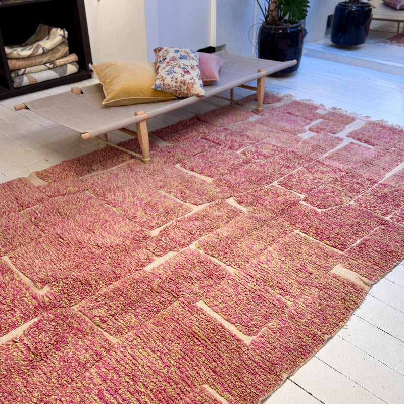 Unika marokkansk gulvtæppe, håndvævet i uld.