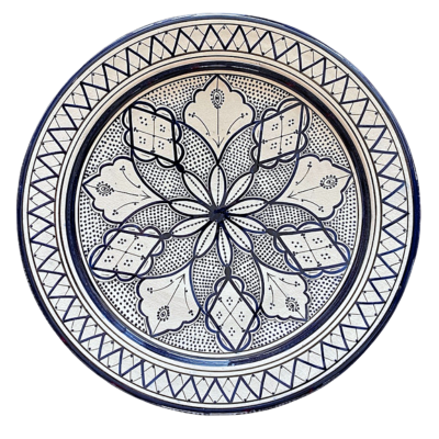 De smukke marokkanske keramikfade og skåle, er håndmalede af dygtige håndværkere med traditionelle mønstre tilhørende de forskellige egne, hvor keramikken laves.
