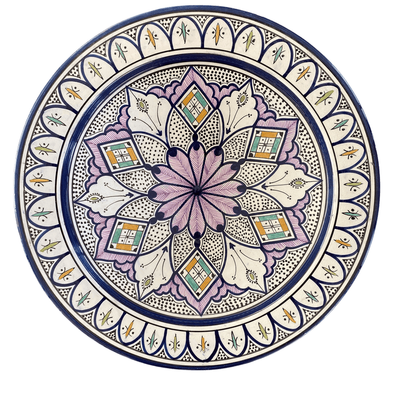 De smukke marokkanske keramikfade og skåle, er håndmalede af dygtige håndværkere med traditionelle mønstre tilhørende de forskellige egne, hvor keramikken laves.