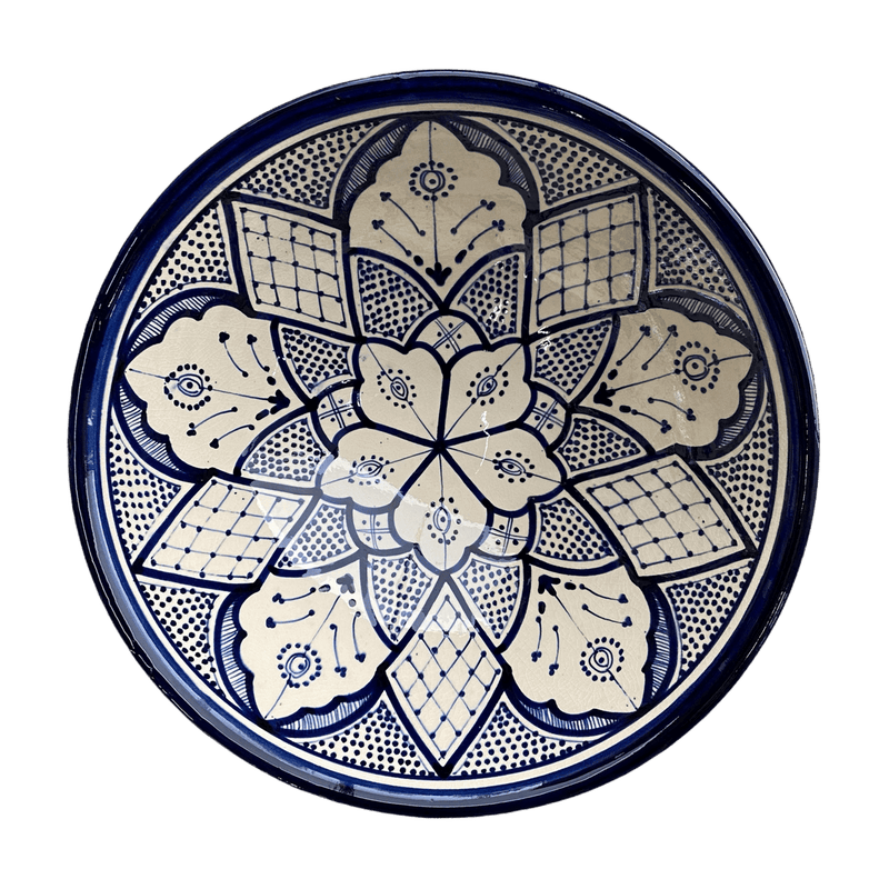 De smukke marokkanske keramikfade og skåle, er håndmalede af dygtige håndværkere med traditionelle mønstre tilhørende de forskellige egne, hvor keramikken laves.