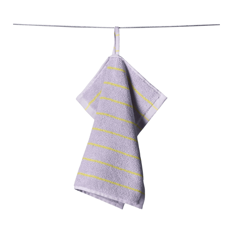 Naram Wash Cloth er ikke kun funktionel, men også stilfuld. Den fås i en bred vifte af flotte farver og klassiske striber, så du kan vælge den, der passer bedst til din stil og indretning. Håndklædet har et dekorativt Bongusta-mærkelogo broderet foran, hvilket tilføjer et strejf af elegance til designet. Håndklædet har en tyk frottéoverflade på tværs af hele området, hvilket sikrer en blød og behagelig følelse mod huden. For nemheds skyld kommer håndklædet med en praktisk løkke, der gør det muligt at hænge det op.