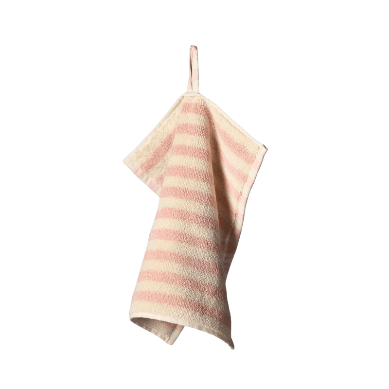 Naram Wash Cloth er ikke kun funktionel, men også stilfuld. Den fås i en bred vifte af flotte farver og klassiske striber, så du kan vælge den, der passer bedst til din stil og indretning. Håndklædet har et dekorativt Bongusta-mærkelogo broderet foran, hvilket tilføjer et strejf af elegance til designet. Håndklædet har en tyk frottéoverflade på tværs af hele området, hvilket sikrer en blød og behagelig følelse mod huden. For nemheds skyld kommer håndklædet med en praktisk løkke, der gør det muligt at hænge det op.