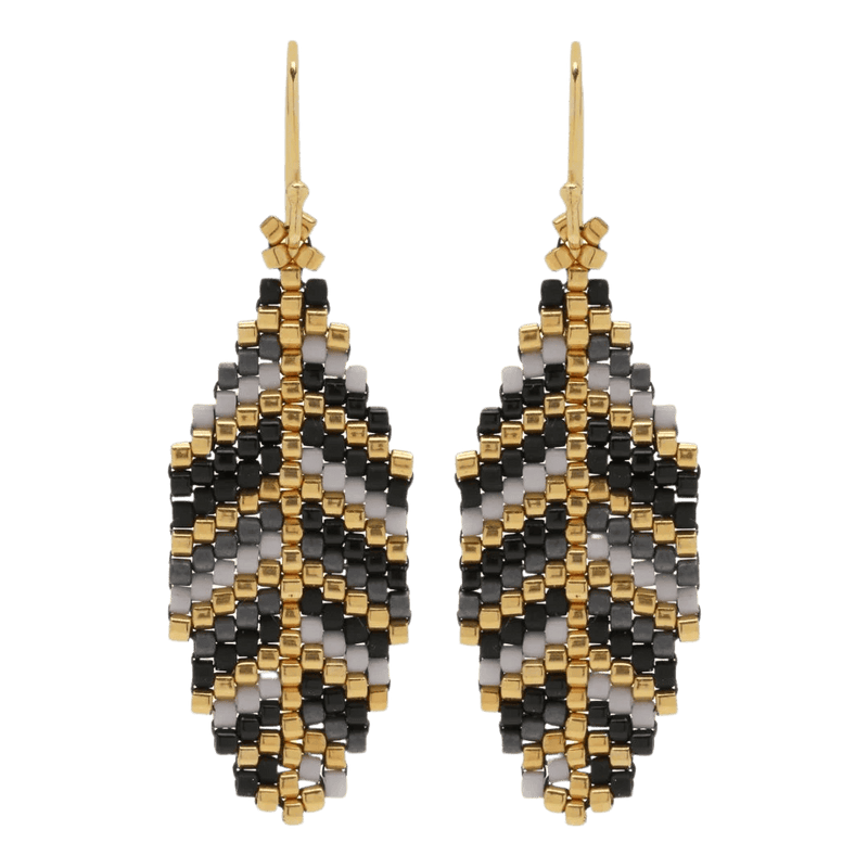 Blad Øreringe - Grå/Mørkegrå/Sort/Guld