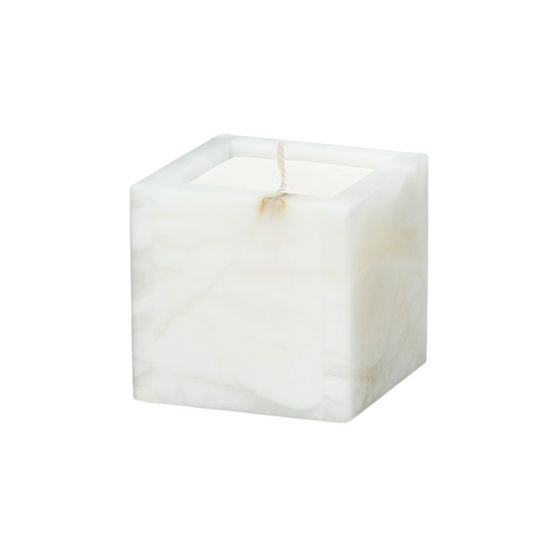 Håndlavet og støbt i naturlig sojavoks og tilsat deres egen allergivenlige duftblanding. Den skulpturelle beholder i italiensk alabast gør hvert lys til et lille stykke interiørkunst. Æsken kommer med låg, og på den måde kan du altid lukke til, hvis duften bliver for meget.
