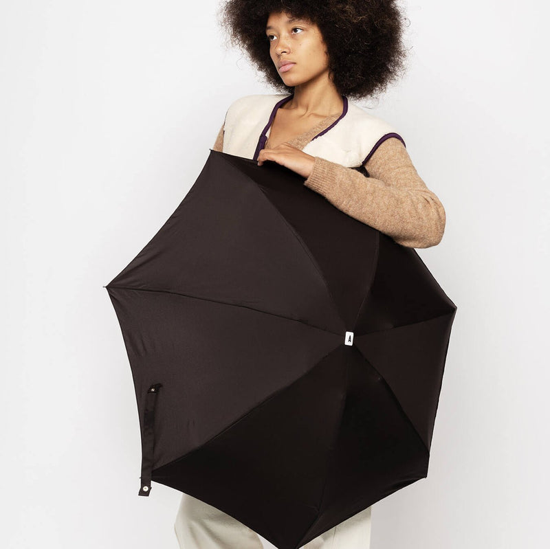 Denne mini paraply er en fin unisex paraply, der er nem at have med på farten. Paraplyen er lige dét federe end de andre paraplyer, der er at finde på markedet. Den fås i en masse fine farver, og så er håndtaget lavet af ahorn træ.