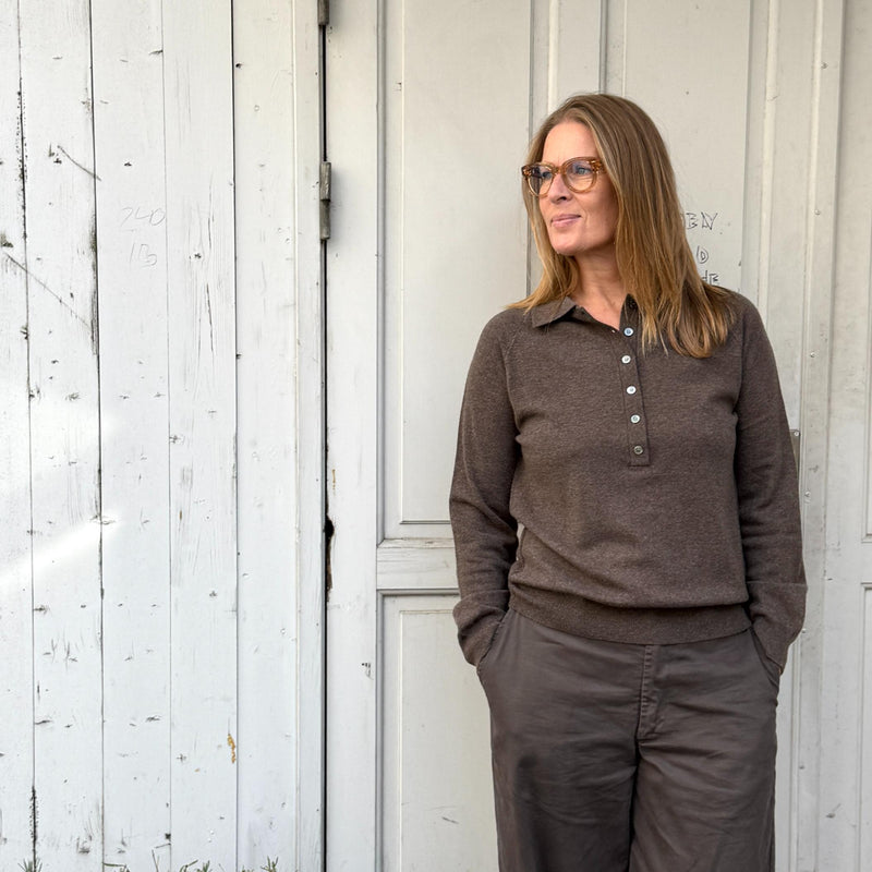 En klassisk polo fra Note Anecdote med knapper og krave. Lavet i 90% merinould og 10% kashmir, som giver den blødeste striktrøje.