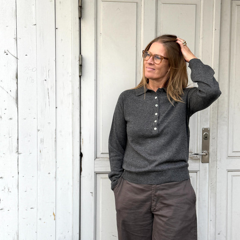 En klassisk polo fra Note Anecdote med knapper og krave. Lavet i 90% merinould og 10% kashmir, som giver den blødeste striktrøje.