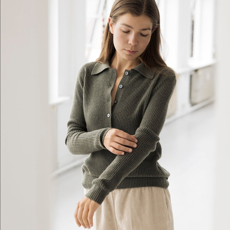 En klassisk langærmet polo strik fra Note Anecdote i den blødeste kvalitet med krave og knapper. Trøjen er lavet i 90% merinould og 10% økologisk cashmere. GOTS certificeret.