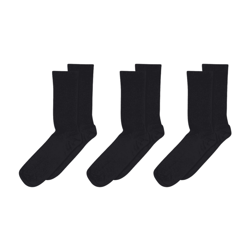 3-pak sorte tynde og lækre uldstrømper i rib kvalitet. Strømperne er lavet i merinould, som er et naturligt uldprodukt fra Merino-fåret, er kendt for sine temperaturregulerende egenskaber, der holder fødderne varme selv i vådt vejr og formindsker svedlugt. Merinould er blødere og tyndere end almindeligt uld, hvilket gør det muligt at producere tyndere strømper.