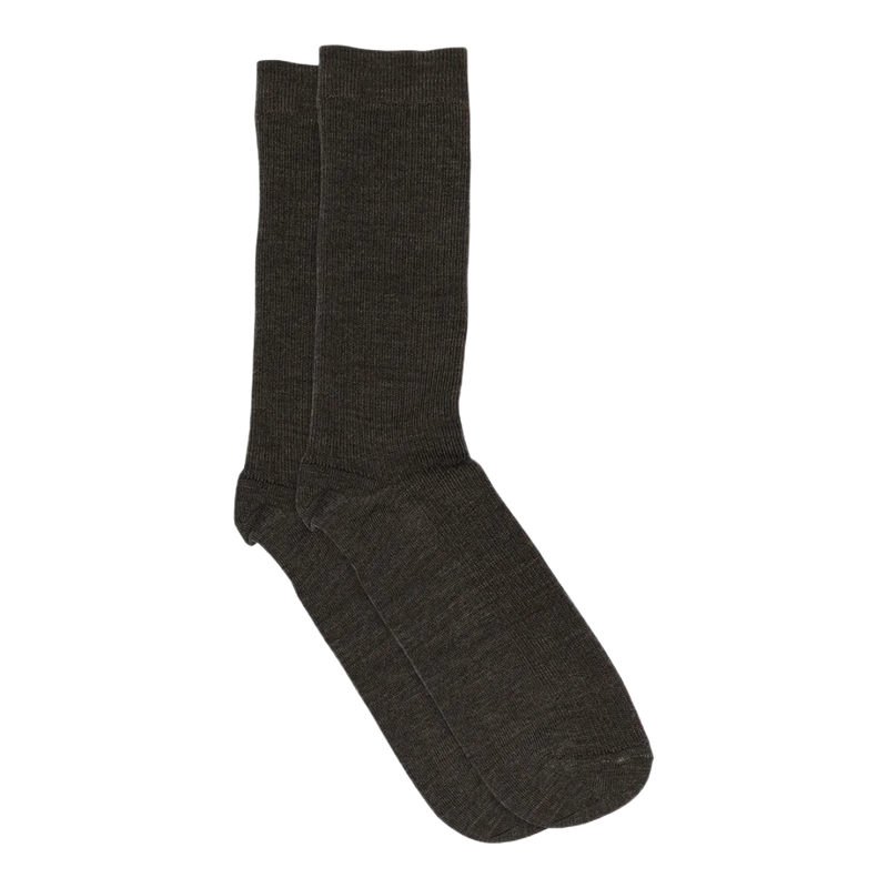 De lækreste mørkebrune tynde og lækre uldstrømper i rib kvalitet. Strømperne er lavet i merinould, som er et naturligt uldprodukt fra Merino-fåret, der er kendt for sine temperaturregulerende egenskaber, der holder fødderne varme selv i vådt vejr og formindsker svedlugt. Merinould er blødere og tyndere end almindeligt uld, hvilket gør det muligt at producere tyndere strømper.