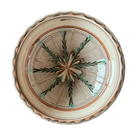 Smukt, håndmalet rumænsk keramik skabt efter traditionelle metoder og århundredgamle teknikker. Hver del formes og males i hånden med flere lag farve, der skaber de karakteristiske mønstre og levende farvespil. De små, sprækkelignende linjer, der kan opstå under brændingen, er en naturlig del af det ægte håndværk og gør hvert stykke unikt.