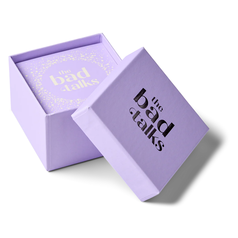 The Bad Talks er fyldt med ubehagelige, morsomme og tabubelagte spørgsmål, der kan være liiidt grænseoverskridende at tale om, men som til gengæld sætter gang i nogle befriende ærlige og sjove snakke om vores mindre kønne sider. Emnerne giver røde kinder - hvor går grænsen for, hvad du har lyst til at indrømme over for dine nærmeste?