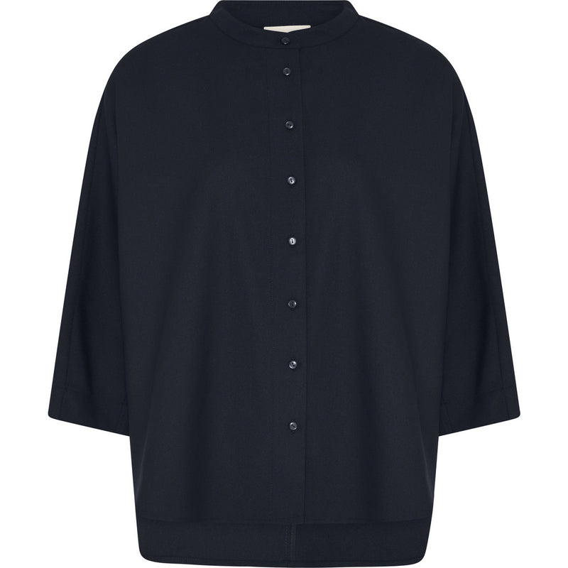 Seoul skjorten fra Frau har et enkelt design med 3/4 ærmer og kinakrave. Skjorten er lidt længere bagpå og runder fint foran.