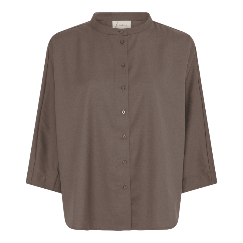 Seoul skjorten fra Frau har et enkelt design med 3/4 ærmer og kinakrave. Skjorten er lidt længere bagpå og runder fint foran.