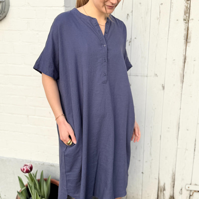 Seoul Skjortekjole - Hør - Deep Cobolt