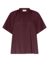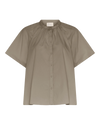 Siena kortærmet skjorte fra Frau har raglanærmer, kinakrave og fine, feminine rynker ved skulder og halsudskæring, der giver et elegant og let fald.