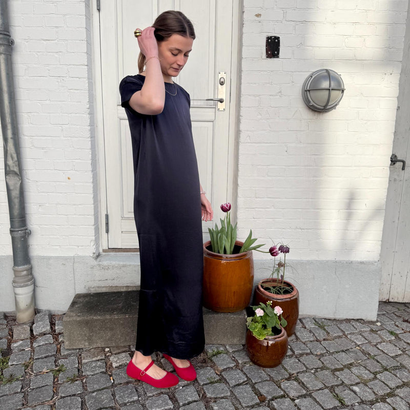 LORIN kjolen fra Crossley er en lang kjole med korte ærmer. Kjolen er lavet i 91% silke og 9% elastan. Det er en klassisk tidløs kjole, som du med sikkerhed kan have i din garderobe i mange år!