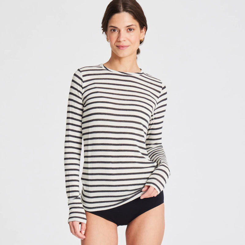 Thyra Bluse - Viskose/Uld - Ecru / Grafite Sailor Stripe