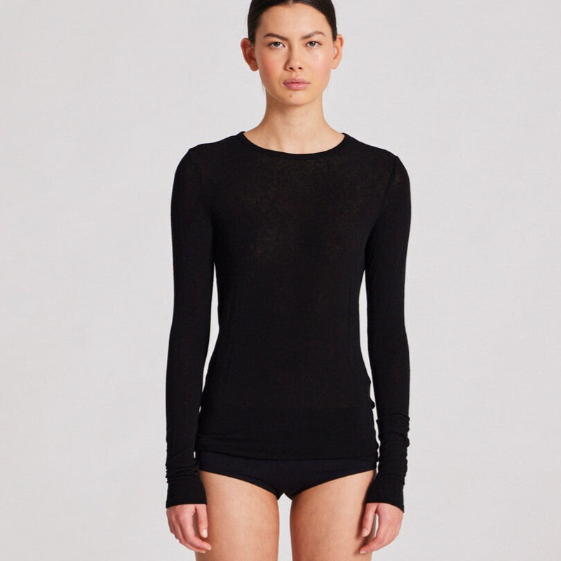 Det er en fantastisk basisbluse, til brug alene, og især under striktrøjer eller andre tynde bluser, for at give lidt varme. Blusen er kropsnær i snittet både på krop og ærmer, og har en smuk flatterende og feminin halsudskæring.