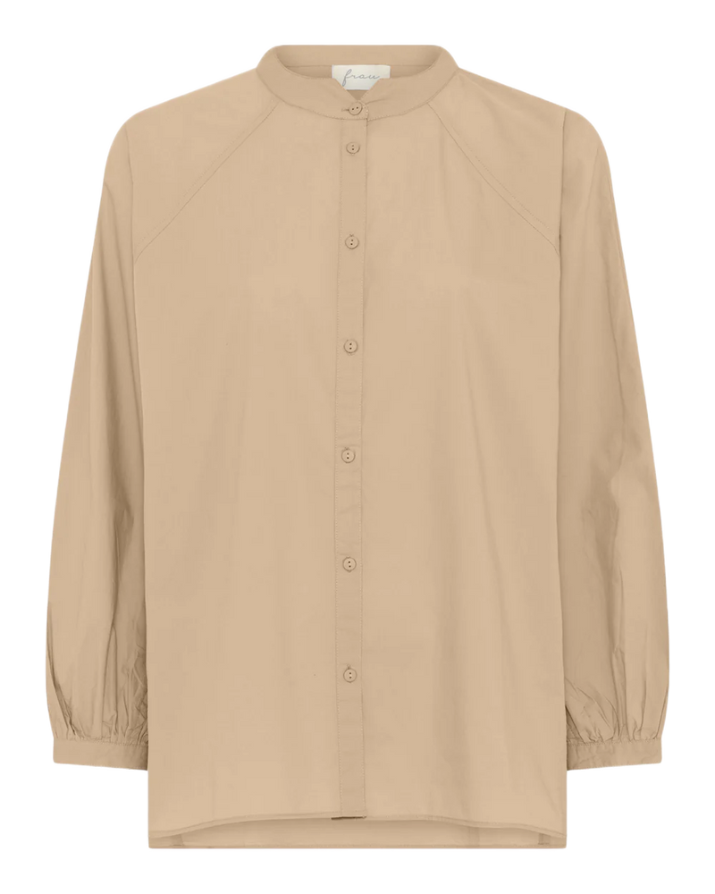 Tokyo kort skjorte i Frau har raglanærmer og et voluminøst, afslappet snit. Den er gennemknappet og kan bruges både lukket eller åbentstående. Den lille, fine kravedetalje kan bæres oprejst eller presses ned for et blødere look..