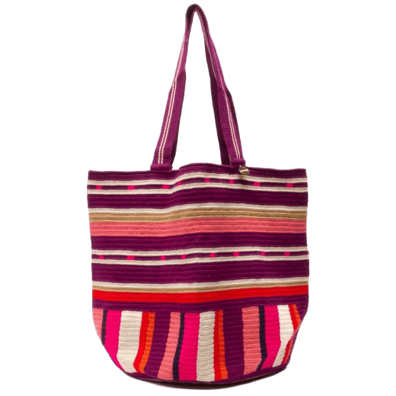 Tasken giver en boho vibe med sine levende mønstre og fine farver. Tasken er designet i Madrid, og er hæklet i hånden af kvindelige Wayuu-håndværkere i Colombia.