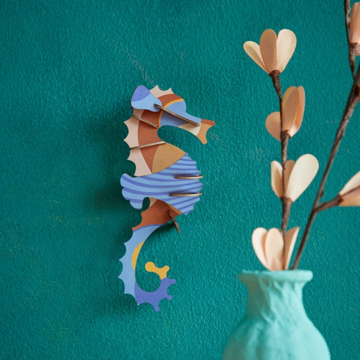 3D-søhesten kommer fladt pakket som 4 x B7-ark med 12 stykker til at tage ud og samle, der medfølger en monteringsvejledning, som kan findes på indersiden af emballagen.