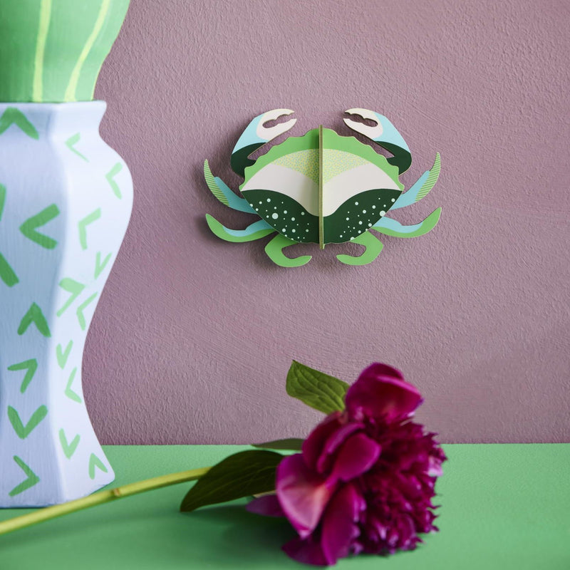 3D-krabben kommer fladt pakket i ark til at tage ud og samle og der medfølger en monteringsvejledning, som kan findes på indersiden af emballagen.