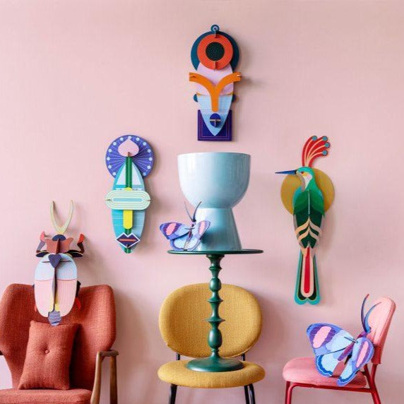 Dedikeret til håndværk og inspireret af barndommens lege og fantasier, tror Studio ROOF på at bringe leg og kreativitet til alle aspekter af livet, uanset din alder! Med stilfuldt -og moderne design giver deres unikke papdyr et stærkt og karakterfyldt udtryk til enhver væg.